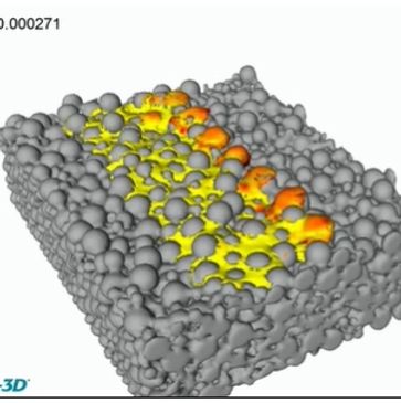 Simulate effects of PSD on packing density and subsequent binder penetration as it relates to velocity, frequency, angle, and diameter. Predict percolation and evaporation effects on part density.